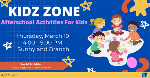 Join us for a variety of fun activities after school on the 3rd Thursday of the month! This month, we will be having an easter egg hunt and making sock bunnies.