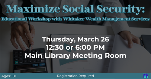 Join us for an informative workshop focused on helping you get the most from your Social Security benefits. Whether you’re nearing retirement or simply want to learn more, this session will cover basics, important claiming strategies, and answers to your questions. No products or services will be offered—this is an educational event designed to help you make confident decisions about your future.