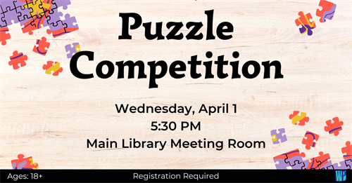 Get your puzzle on! Participants will work in teams of two to complete a 300-piece jigsaw puzzle as quickly as possible. Each pair will receive the same puzzle, and the first three pairs to finish will win prizes.