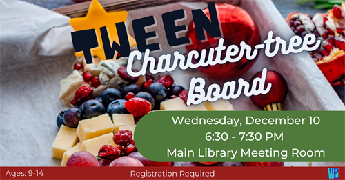 Join Miss Morgan on the 2nd Wednesday of the month for a variety of events & activities. Join us for a jolly good time! Make a charcuterie board in the shape a tree with a variety of fruits, cheeses, sweets and other tasty treats. Can you make the best charcuterie board? Participants will be able to eat their creations and show them off for a chance to win fun prizes and awards.